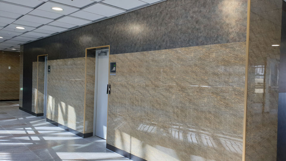 글라스메탈불연패널은 유리와 같이 선명한 표면과 메탈이 주는 강한 내구성을 실현한 신개념 인테리어 마감보드이며 천연대리석 및 인조대리석 대비 경량화 및 내충격성...
