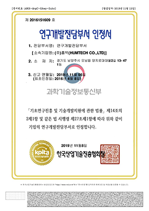 연구전담부서인정서